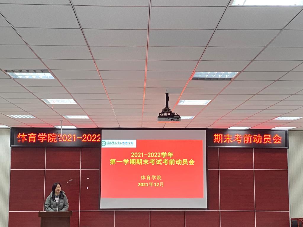 为推动学生积极备考、诚信考试,加强学生考风考纪教育,规范考试秩序,12月13日晚,太阳集团城娱87222020级在体育馆多媒体教室召开2021—2022学年第一学期期末考试考前动员会。太阳集团城娱8722副院长张娟、2020级辅导员龙慧杰及2020级全体学生参加了本次会议。