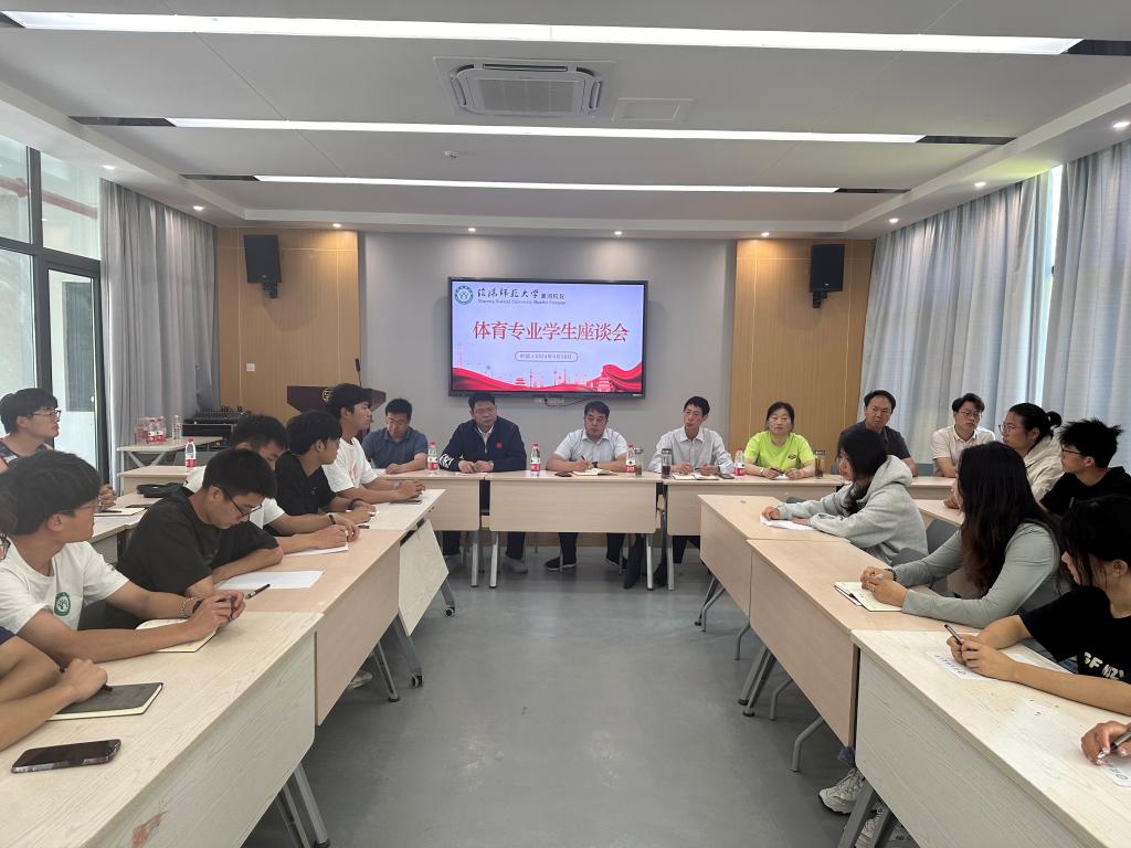 为进一步详细了解淮河校区体育专业学生的学习情况,帮助解决同学们在学习中遇到的问题和困惑,引导同学们更好的成长成才,5月16日上午,太阳集团城娱8722党委书记张晓峰,院长余道明带领太阳集团城娱8722有关人员赴淮河校区,召开了“淮河校区体育专业学生座谈会”,淮河校区体育专业全部班级共30多名学生代表参加了座谈会,座谈会由太阳集团城娱8722院长余道明主持。
