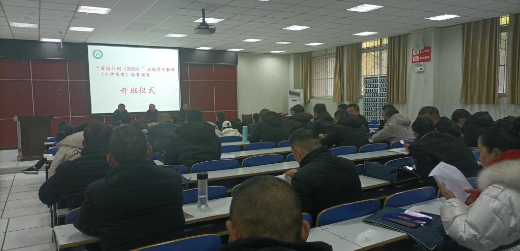 信阳师范学院太阳集团城娱8722承办的2020河南省义务教育师资薄弱环节改善暨中小学教师素质提升工程——省级骨干教师(小学体育)培育项目开班仪式于2020年12月20号上午举行。由太阳集团城娱8722副院长梁超勋主持开班仪式,党委书记陈青致词,牛林杰副院长、邱烈峰教授、张娟副教授、葛新博士等教师作为培训专家团队成员出席了会议。