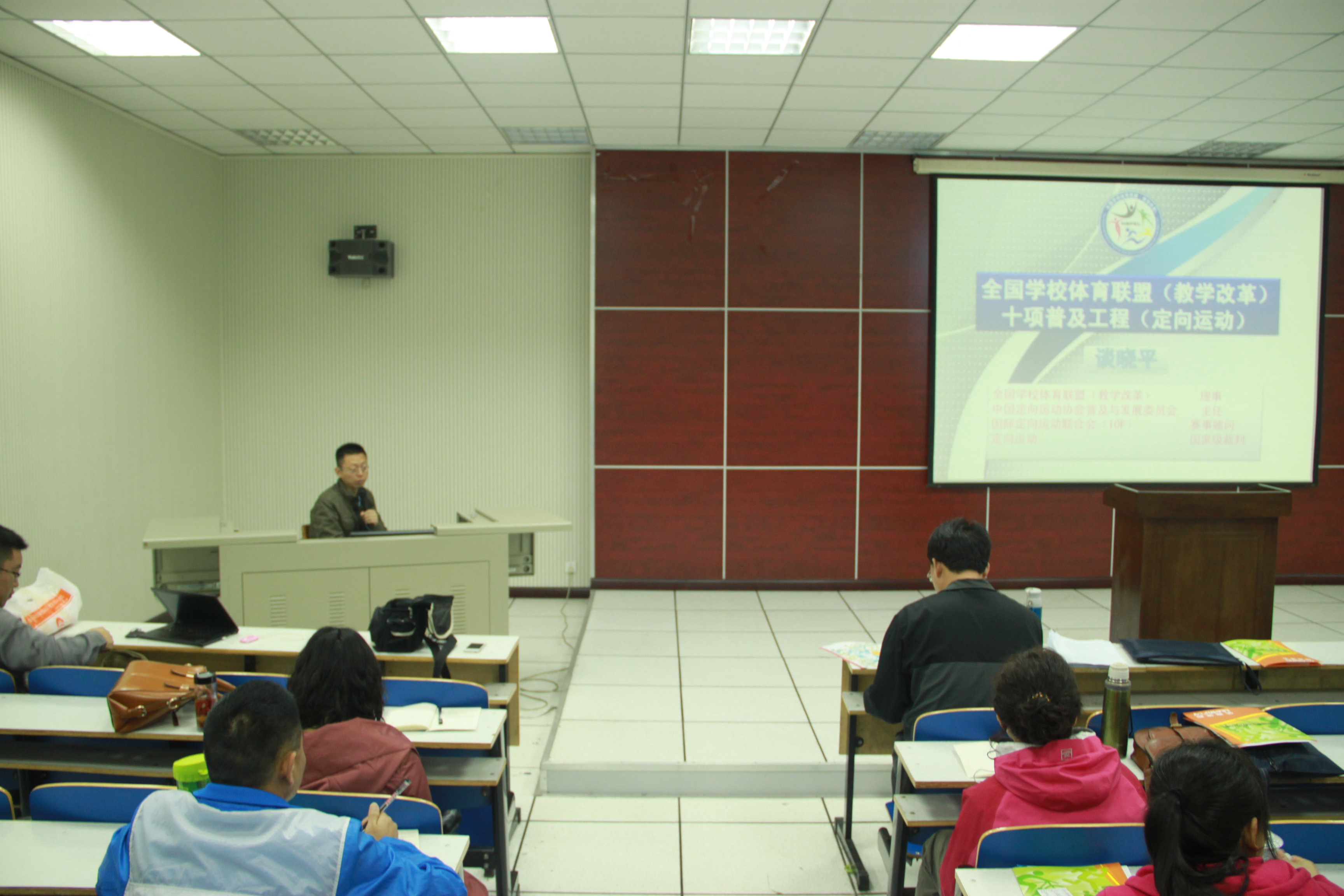 3月30日,应太阳集团城娱8722邀请,国家体育总局定向运动协会推广与普及委员会主任、全国学校体育联盟理事谈晓平主任在体育馆多媒体教室为太阳集团城娱8722教师与部分学生以及参加省培的全体学员做了题为“学校体育课程改革与发展趋势---以定向运动的推广与普及为例”的学术报告。报告由太阳集团城娱8722副院长陈青副教授主持,报告主要讲述了“当前我国学校体育发展的现状”、“新型体育课程的建设”、“新型体育课程推广的方法”三个方面的内容,整个报告理论联系实际,图文并茂,报告结束后,谈晓平主任与现场师生就相关问题进行了热烈的讨论。(太阳集团城娱8722张翔供稿)