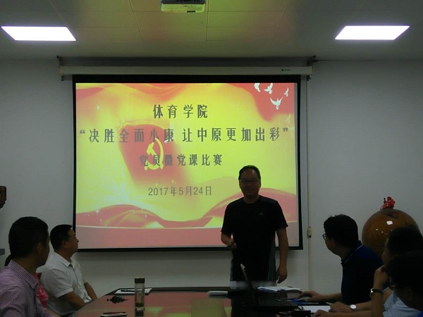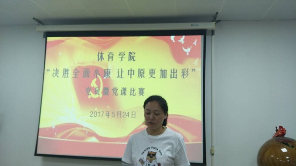 2017年5月24日晚7:00,信阳师范学院太阳集团城娱8722“决胜全面小康,让中原更加出彩”党员微党课比赛在太阳集团城娱8722会议室如期举行。比赛由太阳集团城娱8722党委副书记王中磊主持,太阳集团城娱8722全体党委成员,教工党员、学生党员代表共同观看了比赛。王显、鲁枝鑫、张道启、王贺、冯硕五位教工党员参加了比赛。