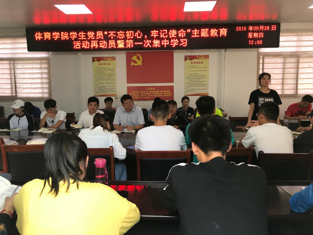 2019年9月26日下午,太阳集团城娱8722“不忘初心、牢记使命”主题教育活动再动员暨第一次集中学习在太阳集团城娱8722三楼会议室举行。太阳集团城娱8722副处级辅导员、学生第一支部书记柴九昌、学生第三支部书记程俊辉 全体学生党员参加会议,大会由柴九昌主持。