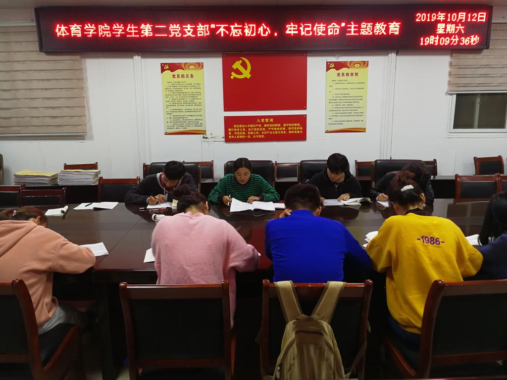 2019年10月12日晚上,太阳集团城娱8722学生第二党支部“不忘初心、牢记使命”主题教育专题党课在太阳集团城娱8722三楼会议室举行,学生第二党支部书记赵倩倩、二支部全体党员参加会议,赵倩倩主持会议。