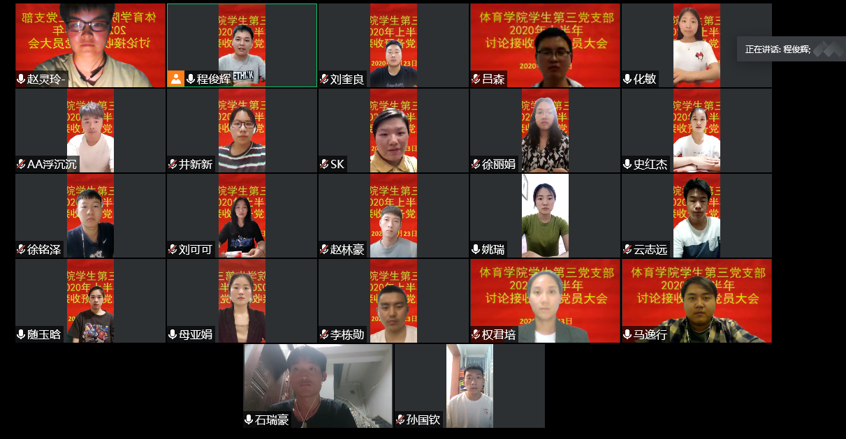 2020年5月23日,我院学生第三支部召开讨论预备党员转正大会,全体党员参加会议,会议由学生第三支部书记程俊辉主持。