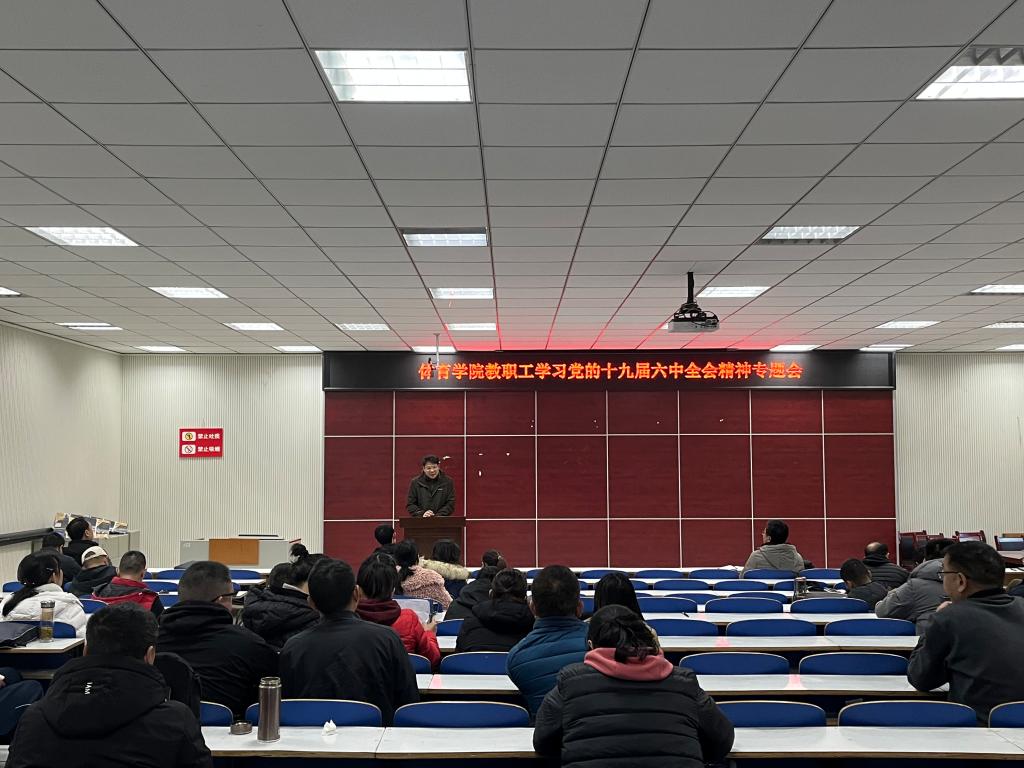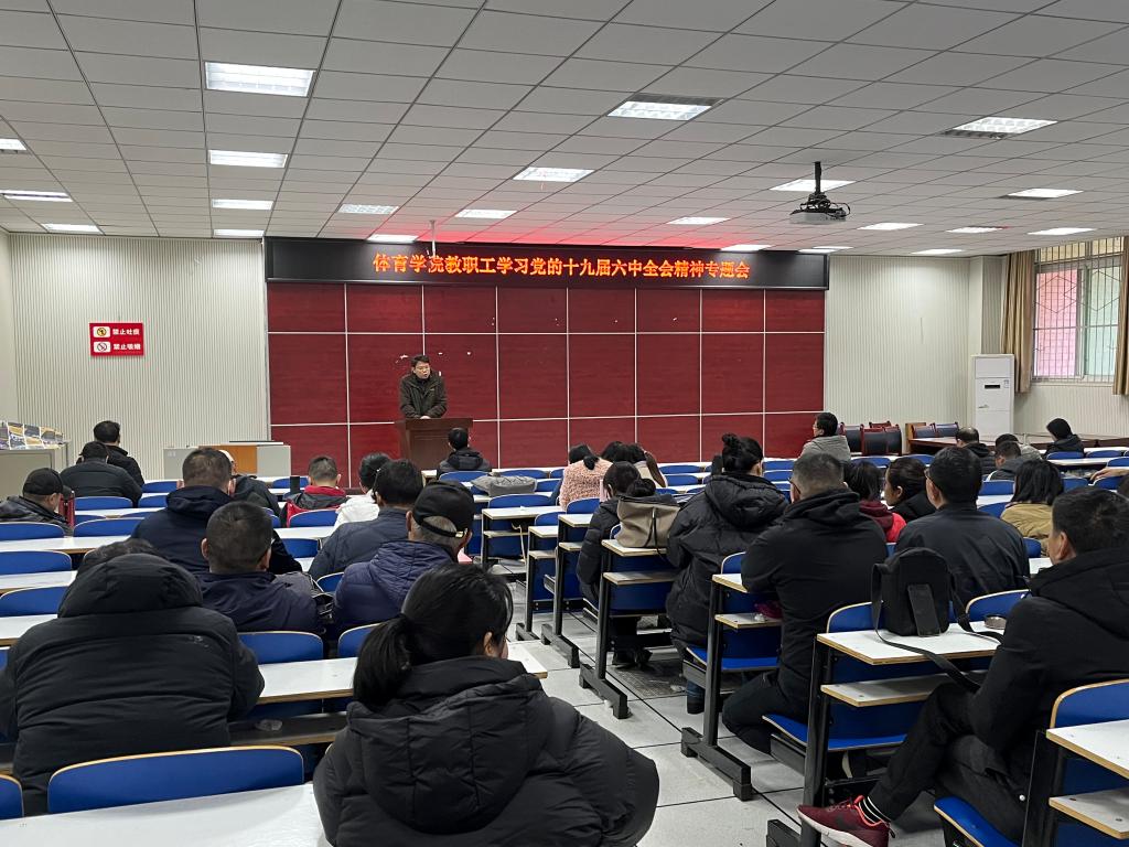 11月30日下午2:30,太阳集团城娱8722在体育馆多媒体教室举行集中学习党的十九届六中全会精神会议,全体教职工参加了本次会议。