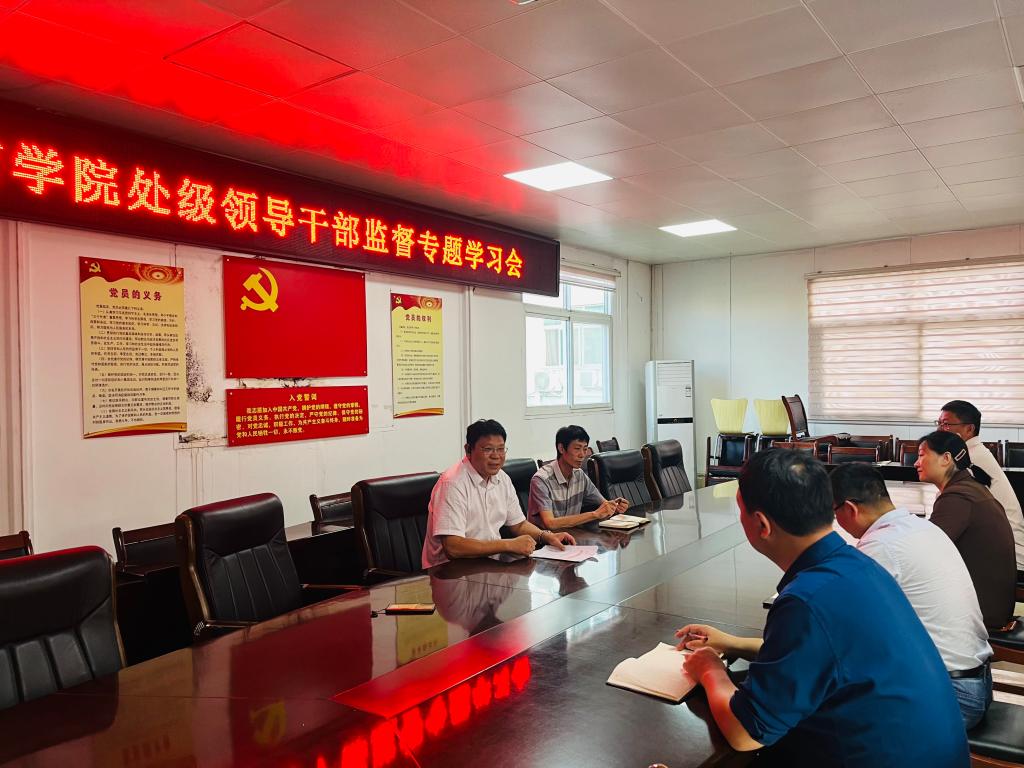 学习会上,柴九昌全文领学了《领导干部报告个人有关事项规定》《领导干部个人有关事项报告查核结果处理办法》《中共信阳师范学院委员会处级干部任前档案审核暂行办法》《中共信阳师范学院委员会关于处级干部兼职管理的暂行办法》《中共信阳师范学院委员会关于领导干部因私出国(境)管理的暂行规定(修订)》等干部监督管理相关政策法规。