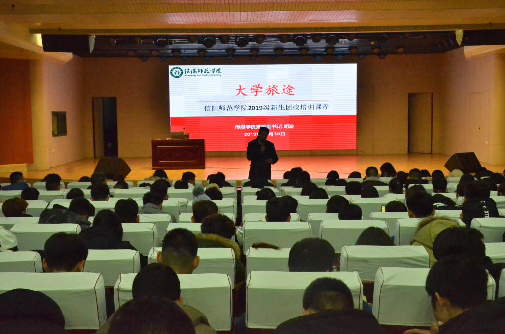 11月30日上午,传媒学院党委副书记胡波应邀为太阳集团城娱8722、旅游学院、教师教育学院2019级新生团员授课,太阳集团城娱8722副处级辅导员柴九昌、团委老师赵倩倩莅临现场与三个学院2019级新生团员共同参加此次活动。此次团课由柴九昌主持。