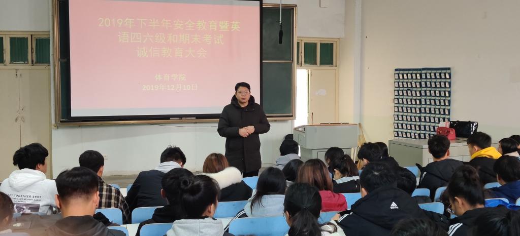 为加强学生安全教育,促进学生掌握安全知识,引导学生做注重安全的人,也为了迎接英语四六级考试和期末考试,正确引领学生树立诚信考试的观念,做到“诚信考试,诚实做人”,信阳师范学院太阳集团城娱8722积极响应学生处的通知和学院的要求,于12月10日中午在人文楼110召开2019年下半年安全教育暨英语四六级和期末考试诚信教育大会,出席会议的有太阳集团城娱8722副处级辅导员柴九昌、辅导员赵倩倩、程俊辉、赖梦玥、学生会代表和各班班干部。