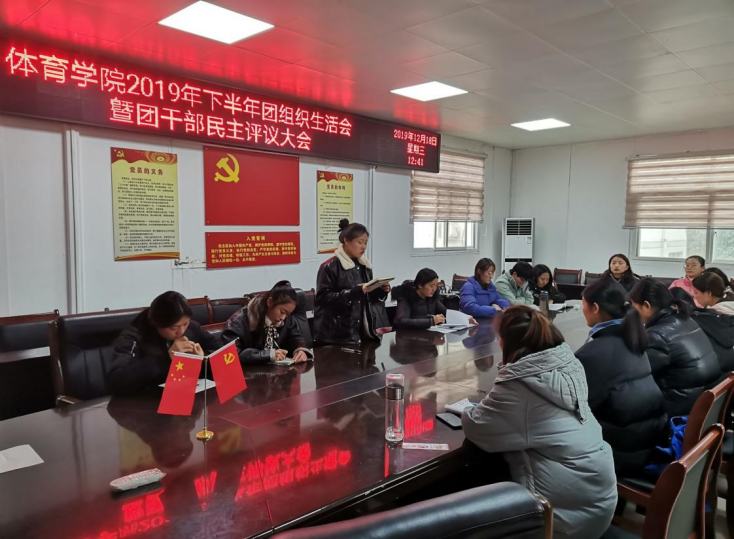 2019年12月18日中午,太阳集团城娱8722团委2019年度团组织生活会暨团员民主评议在太阳集团城娱8722三楼会议室召开,本次会议由团委书记赵倩倩老师主持,各班团支书参加本次会议。