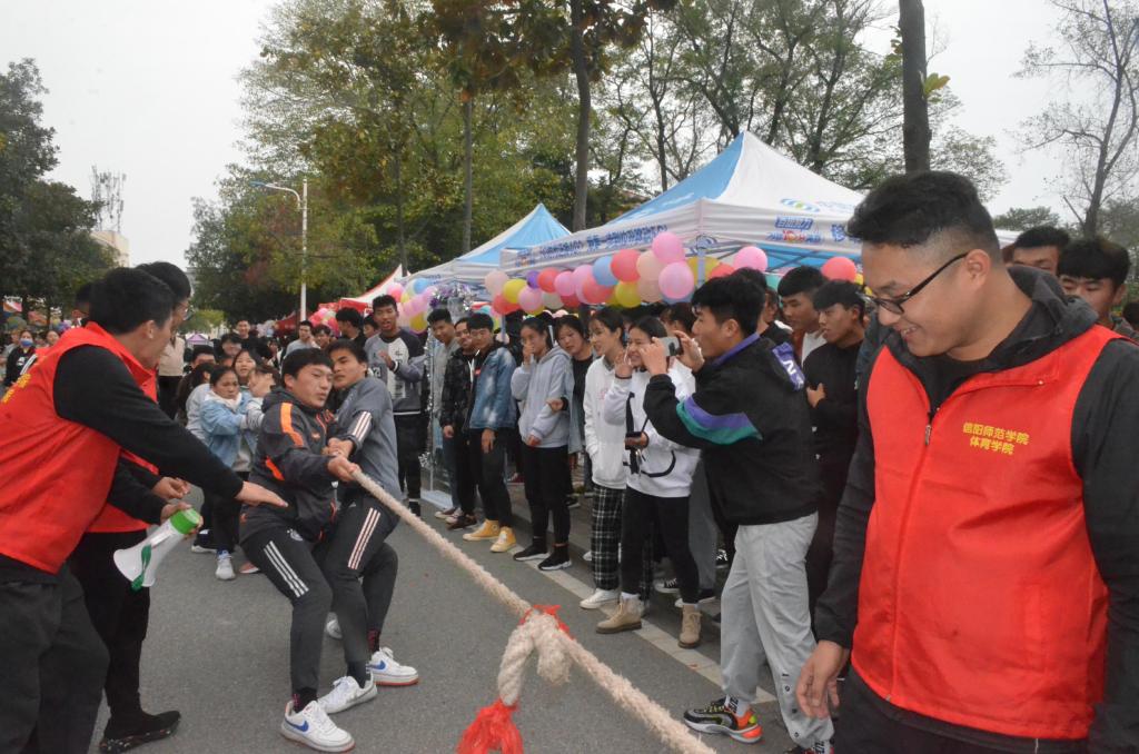 拔河比赛,每队10人,5名男生,5名女生。团队的协作,合理的人员匹配,合理的人员站位。为团队的荣誉而声嘶力竭,为团队的荣誉而相互鼓舞。为团队的荣誉而相互依靠,为团队的荣誉而相互欢庆。