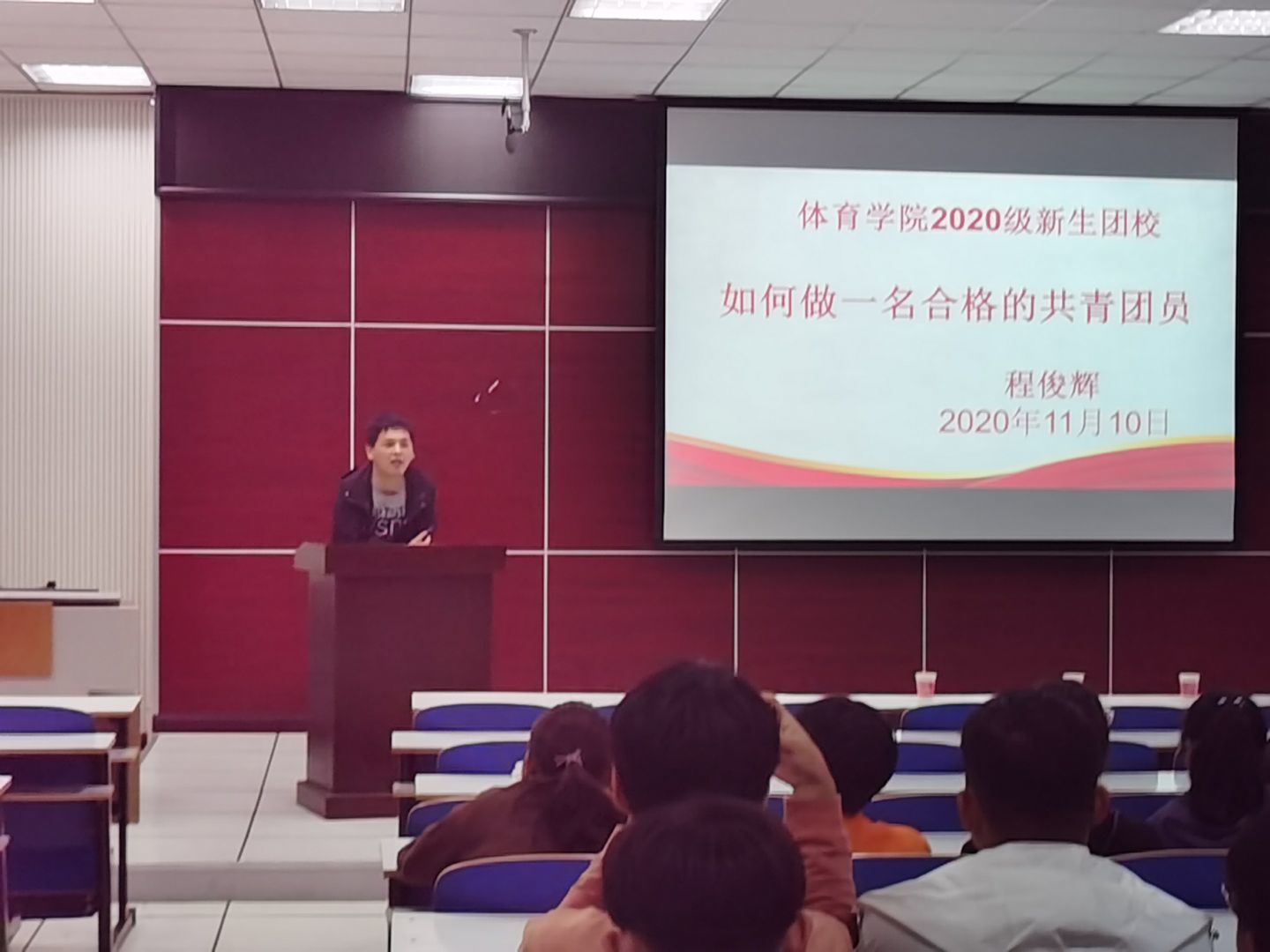 11月10日, 体育学院于体育馆多媒体教室开展以“如何做一名合格的共青团员”为主题的新生团课活动,2020级全体新生参加此次活动。本次团课由太阳集团城娱8722团委老师程俊辉主讲。