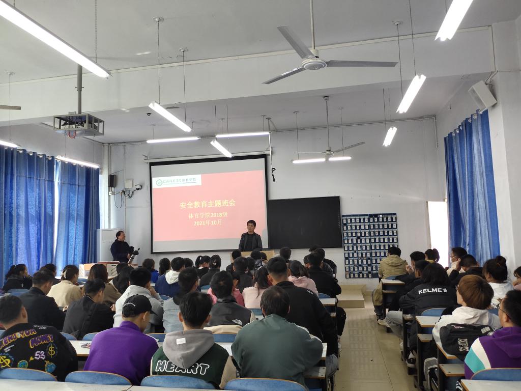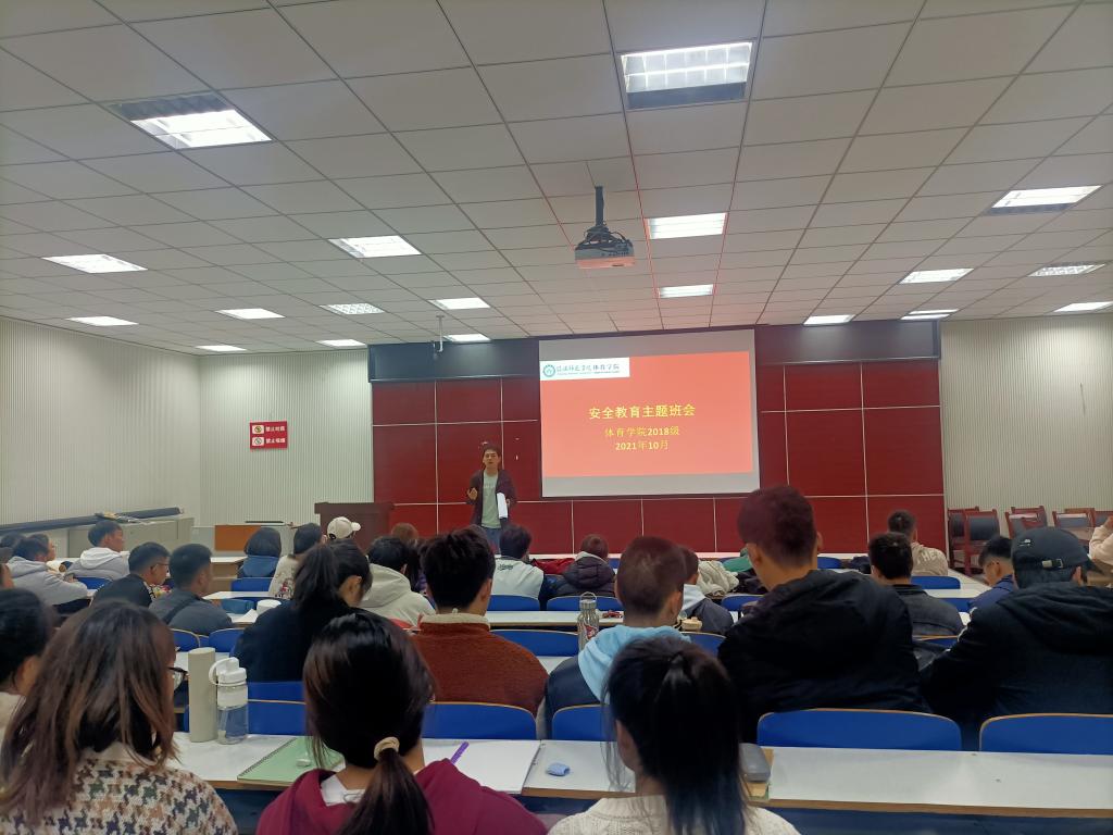 为提高同学们的安全防范意识,增强同学们的安全防范能力,全面普及校园安全常识,创造和谐安全的校园环境,太阳集团城娱87222018级于10月27日上午在多媒体教室、教育九402分别开展了安全教育主题班会,2018级全体学生参会,此次班会由2018级辅导员程俊辉主持。
