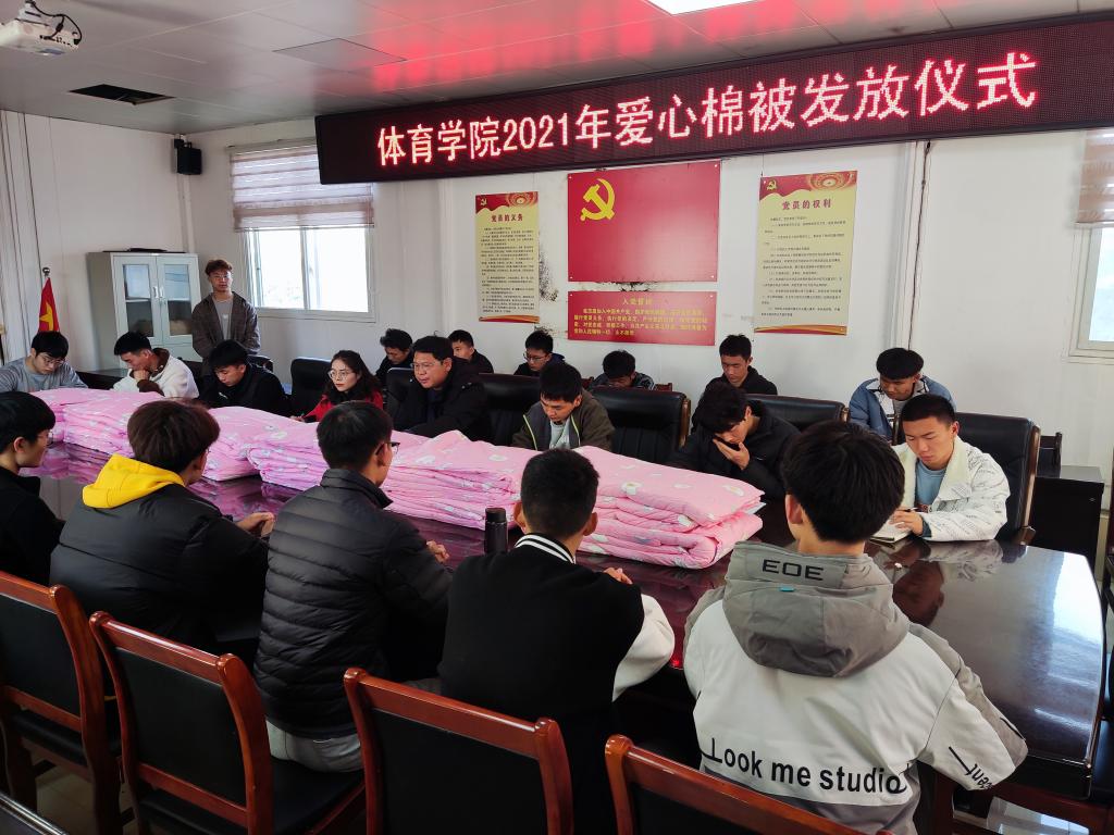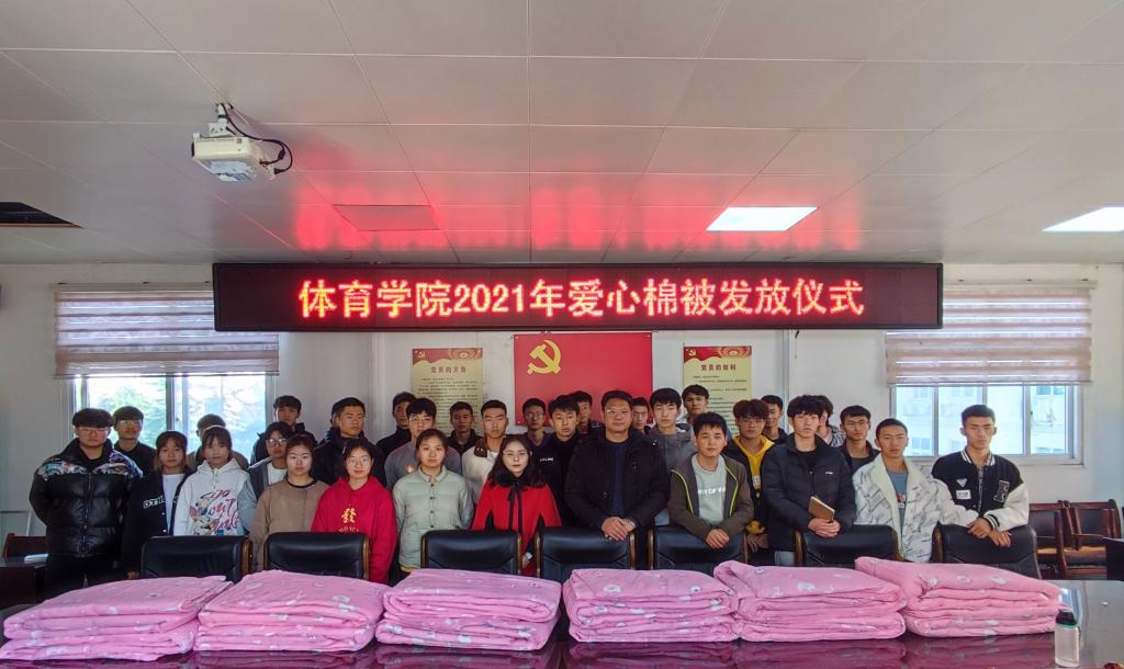 为困难学生发放爱心棉被在我校已经举行17年了,已经成为我院学生资助的主要项目之一。一床棉被,温暖了整个寒冬,也给学生心里留下一颗传递爱心的种子。天气虽寒冷,但同学们心中洋溢着一股股暖流。希望同学们常怀奋进之心,,将温暖传递下去,相信这份温暖定能成为鼓励师院学子不断奋进的动力,使同学们向着更好更高更远的目标奋进。