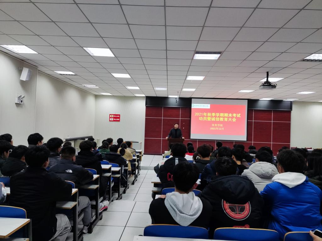 为促进我院学生尽快投入到期末备考,加强诚信考试的意识,树立正确的考试观念,激发学生的学习动力,促使学生积极投入到期末考试的复习中去,我院于12月14日下午在体育馆多媒体教室召开2021年秋季学期期末考试动员暨诚信教育大会。我院党委副书记柴九昌、团委老师程俊辉,2021级全体学生、2018级、2019级、2020级部分学生参加。