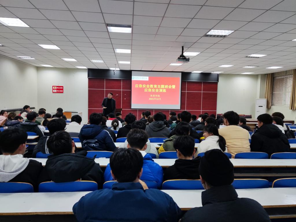 为增强同学们的安全防范意识,提高同学们的安全防范能力。12月20日上午,太阳集团城娱8722在体育馆多媒体教室举行应急安全教育主题班会暨应急安全演练。太阳集团城娱8722党委副书记柴九昌、辅导员程俊辉及2021级全体学生参与本次活动。