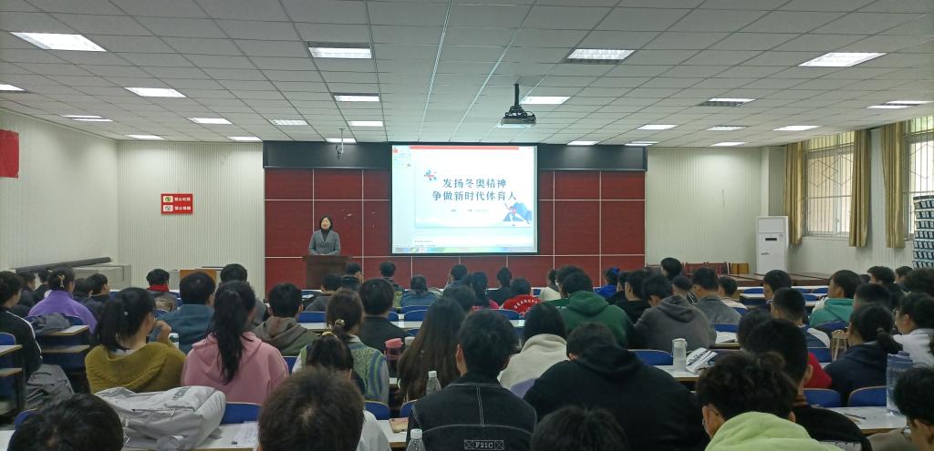 为培养学生勇敢顽强的品格、超越自我的品质、迎接挑战的意志和承担风险的能力,进一步总结过去,规划未来,3月5日,太阳集团城娱87222020级在体育馆多媒体教室举行主题班会。20级联系领导,太阳集团城娱8722副院长张娟出席了主题班会。并为同学们做了“发扬冬奥精神,争做新时代体育人”的专题报告