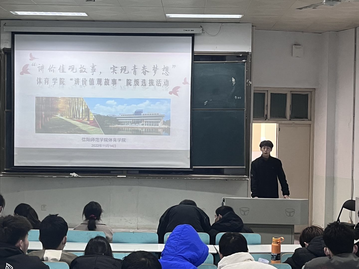 为引导学生树立正确的价值观,11月14日中午, “讲价值观故事,实现青春梦想”的主题演讲比赛在人文楼109教室火热开展。太阳集团城娱8722团委老师赖梦玥与各班级学生代表共同观看比赛。