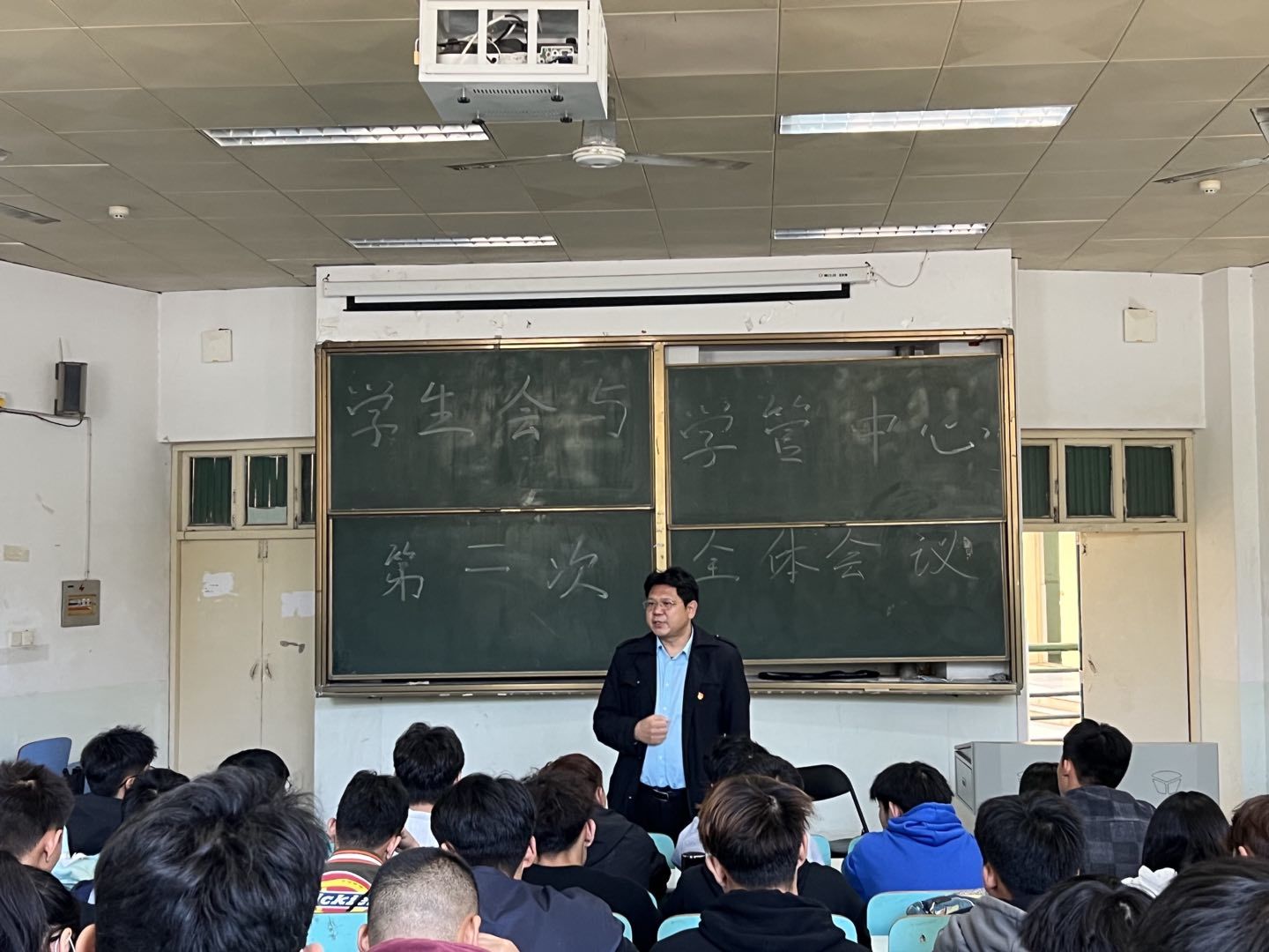 10月11日中午12时,太阳集团城娱8722在人文楼109教室召开学生干部培训会。太阳集团城娱8722党委副书记柴九昌、19级辅导员赖梦玥以及学生会与学管中心全体成员参加会议,会议由赖梦玥主持。