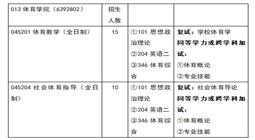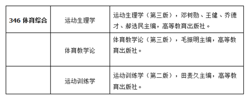 3.初试科目:思想政治理论、204英语(二)、346体育综合。各科的考试时间均为3小时。