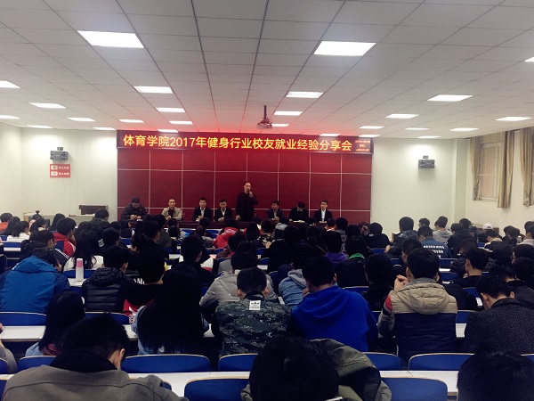 11月14日下午3:00,太阳集团城娱87222017年健身行业校友就业经验分享会在体育馆多媒体教室举行,太阳集团城娱87226位从事健身行业工作的校友为太阳集团城娱872214社体、15社体、16社体的200多名学生分享了自己关于学习、择业、就业的感悟。太阳集团城娱8722党委副书记王忠磊,辅导员柴九昌,鲁枝鑫一同参加了分享会。分享会由柴九昌主持。