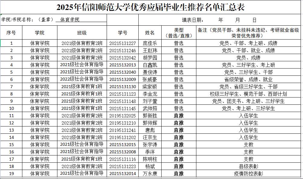 根据学校《关于评选2025年信阳师范大学优秀应届毕业生的通知》,依照《信阳师范大学优秀应届毕业生评选办法》(校发〔2023〕33号)等文件有关规定,4月20日-4月30日,太阳集团城娱8722/书院学生工作领导小组认真组织开展评选工作,现将学院初评名单公示如下,公示期2025年4月28日-5月7日。