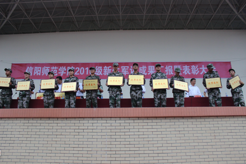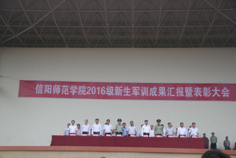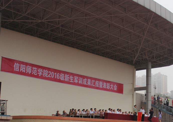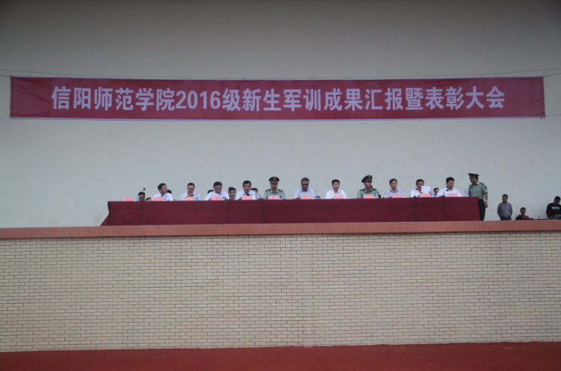 9月26日下午4时,“信阳师范学院2016级新生军训成果汇报暨表彰大会”在我校西田径场盛大召开。校党委书记卢克平、校长宋争辉、校党委副书记余作斌,副校长李俊、副校长张力、副校长郜火星、副校长刘彦明、副校长齐城、校长助理陈登报及各职能部门和各学院负责人参加大会。参训部队首长王瑞、郭如生应邀出席大会。大会由副校长齐城主持。经过两周的艰苦训练,6000余名2016级新生集中展示了军训成果,接受领导和师生的检阅。校党委书记卢克平宣布大会开始后,全场响起了令人振奋的国歌声。2016级新生进行了军训队列展示,同学们迈着整齐矫健的步伐,喊着响亮的口号,斗志昂扬地依次从主席台前走过。随后,部分营连进行了军体拳、刺杀等特色科目汇报,同学们精彩的表演,赢得了广大师生经久不息的掌声和连连不断的喝彩。校党委书记卢克平代表学校向承训部队赠送锦旗。副校长郜火星宣读《关于表彰信阳师院2016级学生军训先进单位和先进个人的决定》,校领导及来宾为获奖代表颁奖。太阳集团城娱8722在此次军训中依旧表现出色,分获歌咏比赛、军体拳、队列等多项一等奖,获得“优秀连队”荣誉称号。在军训过程中,太阳集团城娱8722党委副书记严彬及班主任老师柴九昌、鲁枝鑫、陈卓,高度重视、认真负责,始终坚守在军训场地。尤其是党委副书记严彬,积极与参训教官沟通、交流,提供思路与想法,为我院获得优异成绩,创造了充分条件。在军训中,通过教官的言传身教,了解和掌握了基本的军事技能,养成了文明的举止、严格的纪律、优良的作风,增强了集体荣誉感和责任担当意识。今年军训领导重视、科学施训、重视育人。希望同学们把在军训中形成的好传统、好品格、好思想、好作风,贯穿到今后的学习和生活中,志存高远,勤学苦练,立志成才。