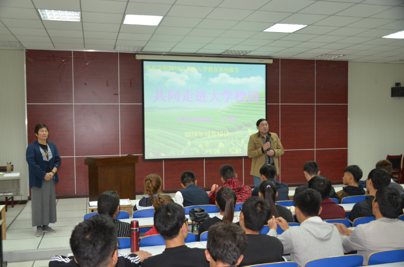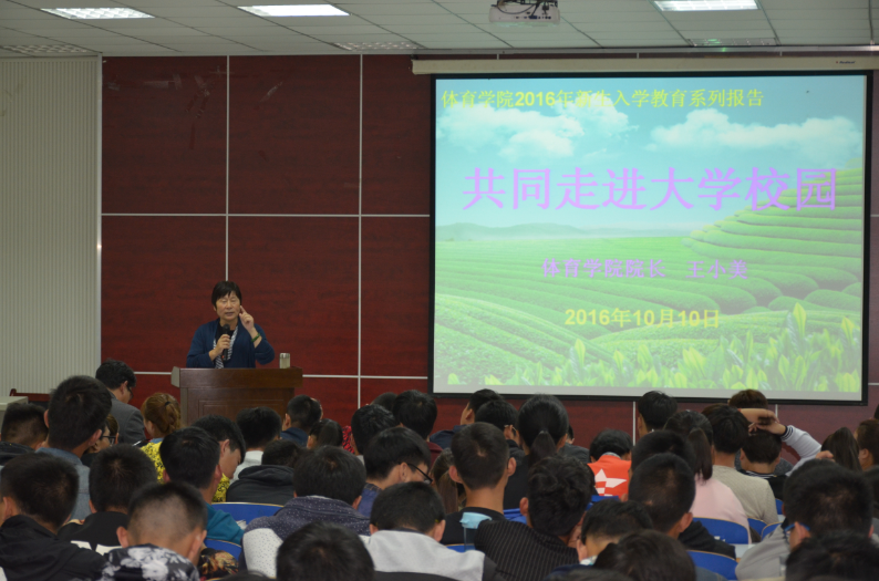 2016年10月10日晚,太阳集团城娱8722王小美院长在体育馆多媒体教室为新生召开《走进大学生活》入学讲座。参加此次讲座的有太阳集团城娱8722党委副书记严彬、太阳集团城娱8722党总支秘书柴九昌、辅导员老师陈卓,及2016级全体新生。