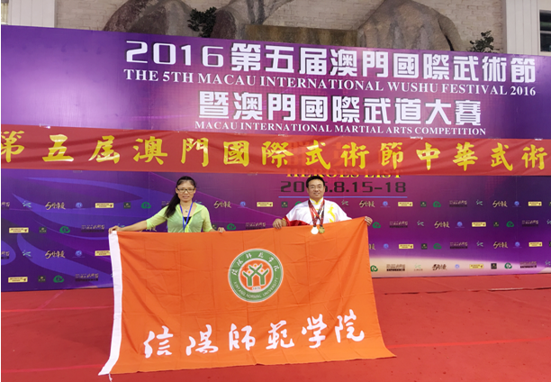 日前,2016年第五届澳门国际武术节暨国际武道大赛,在澳门综艺馆隆重举行。来自国际和国内的知名院校、武术团体近二千名武术选手参加了参加了此次盛会。我校教师杨晶伟博士应邀代表学校参赛,并为开幕式进行了武术表演。通过激烈角逐,杨晶伟博士充分发挥出自身优秀的武术专业技能,先后在M8棍龙和M8刀龙两个竞赛项目中获得冠军。