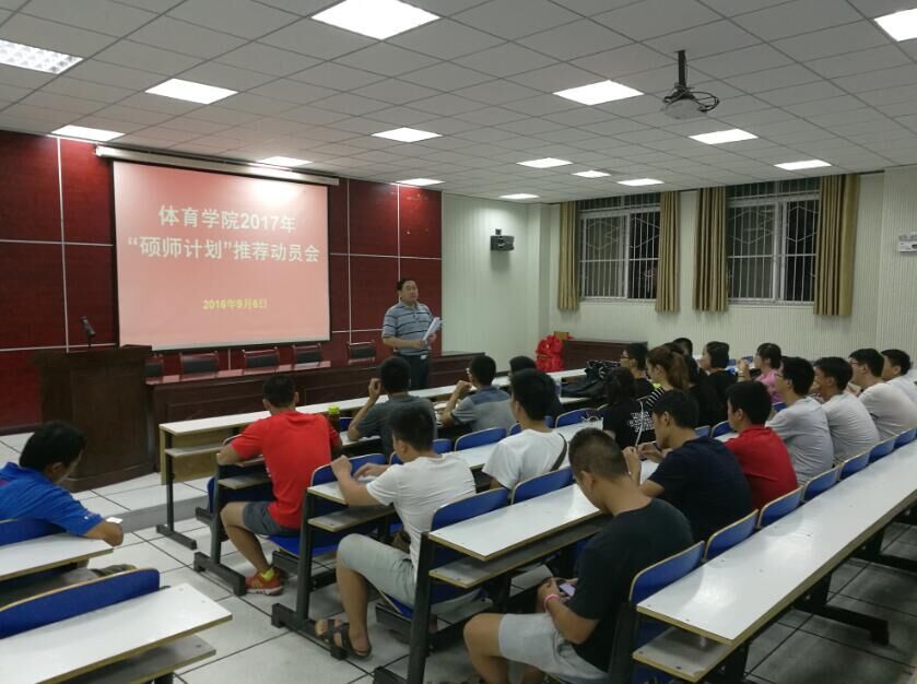 九月六日晚,太阳集团城娱8722在体育馆多媒体教室召开“太阳集团城娱87222017年‘硕师计划’推荐动员会”。会议由太阳集团城娱8722党委副书记严彬主持,班主任老师张道琪、杨明勇、鲁枝鑫、陈卓,参加此次动员会。