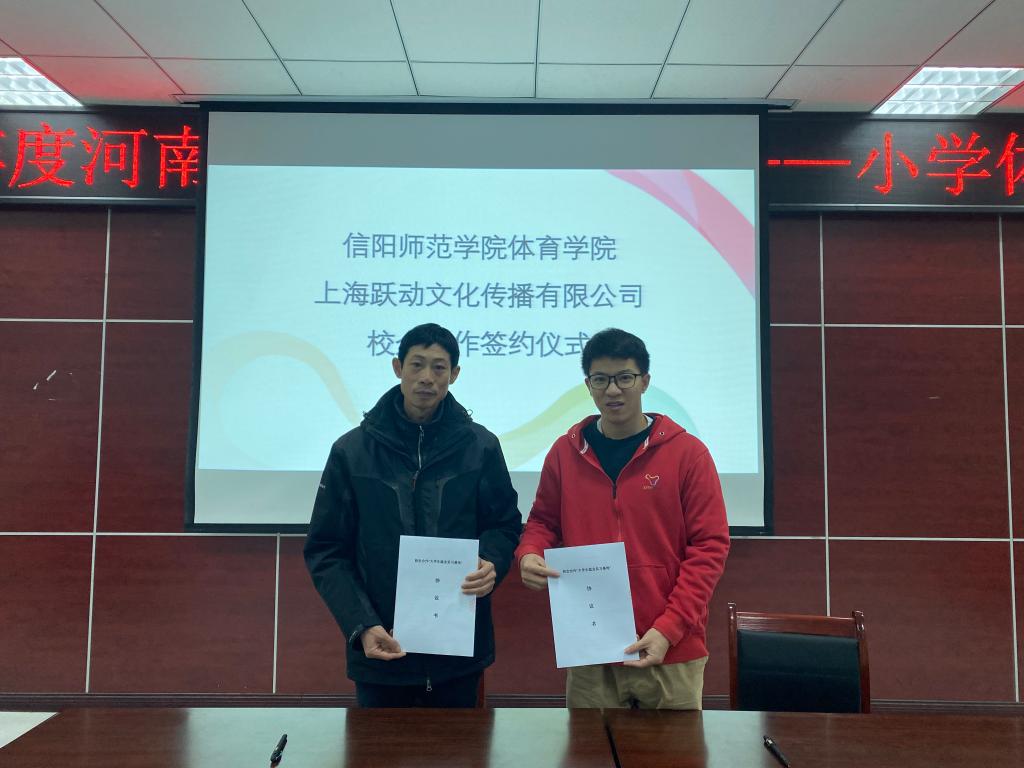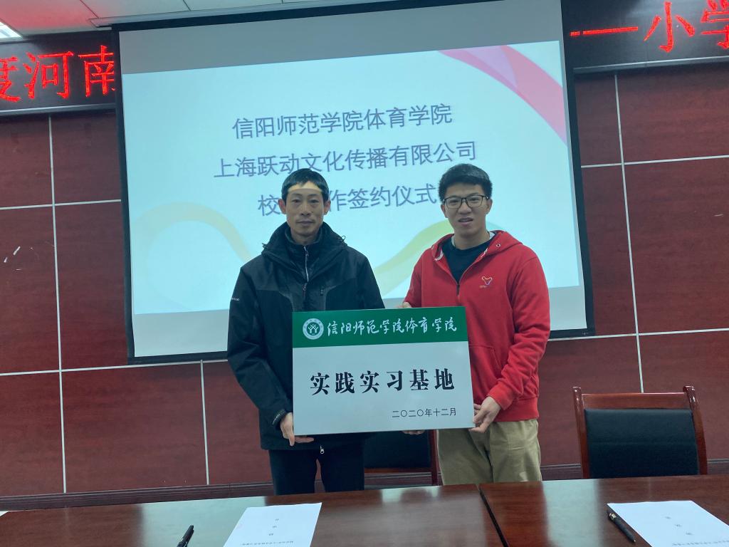 2020年12月27日,应太阳集团城娱8722邀请,上海跃动文化传媒有限公司在信阳师范学院太阳集团城娱8722多媒体教室与我校正式签约了校企合作,并邀请了李跃教练为我校师生以及来我校培训的河南省数百余名体育骨干教师做了题为“国内外跳绳发展现状”的学术报告。
