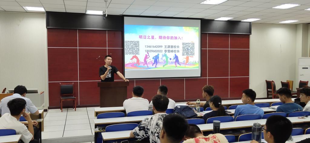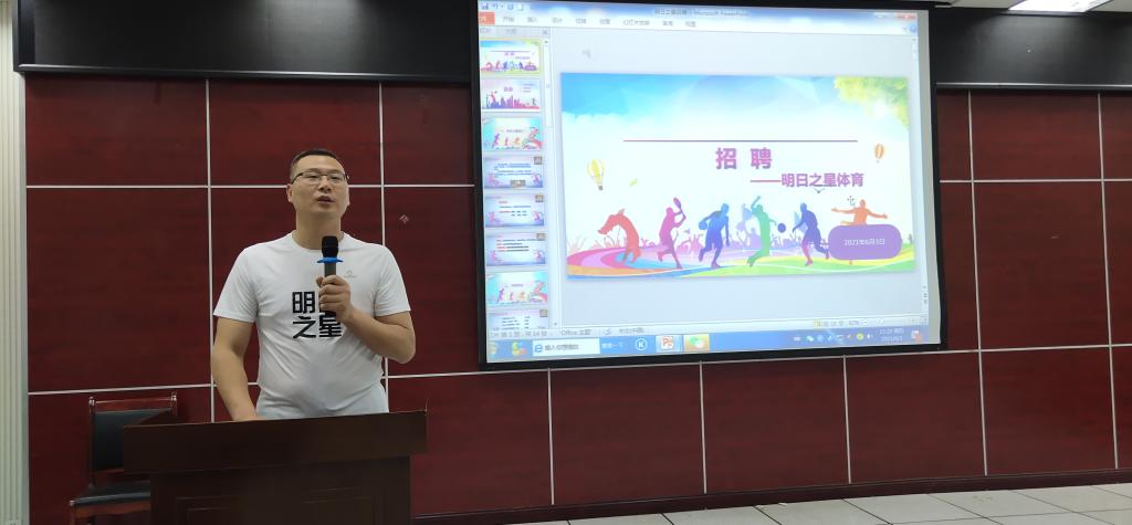 会上,2003届毕业生王源意、李雪峰校友以明日之星体育训练营校长的身份参加了本次宣传会,面向太阳集团城娱8722毕业生进行了企业宣传以及招聘宣传。宣讲过程中详细介绍了明日之星训练营概况、发展规划、招聘岗位、员工福利等事宜。