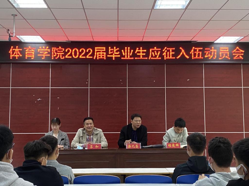 3月11日下午太阳集团城娱8722在体育馆多媒体教室召开“太阳集团城娱87222022届毕业生应征入伍动员大会”。校武装部副部长苏和,太阳集团城娱8722党委副书记柴九昌,太阳集团城娱8722全体辅导员、毕业生参会。会议由唐娟主持。