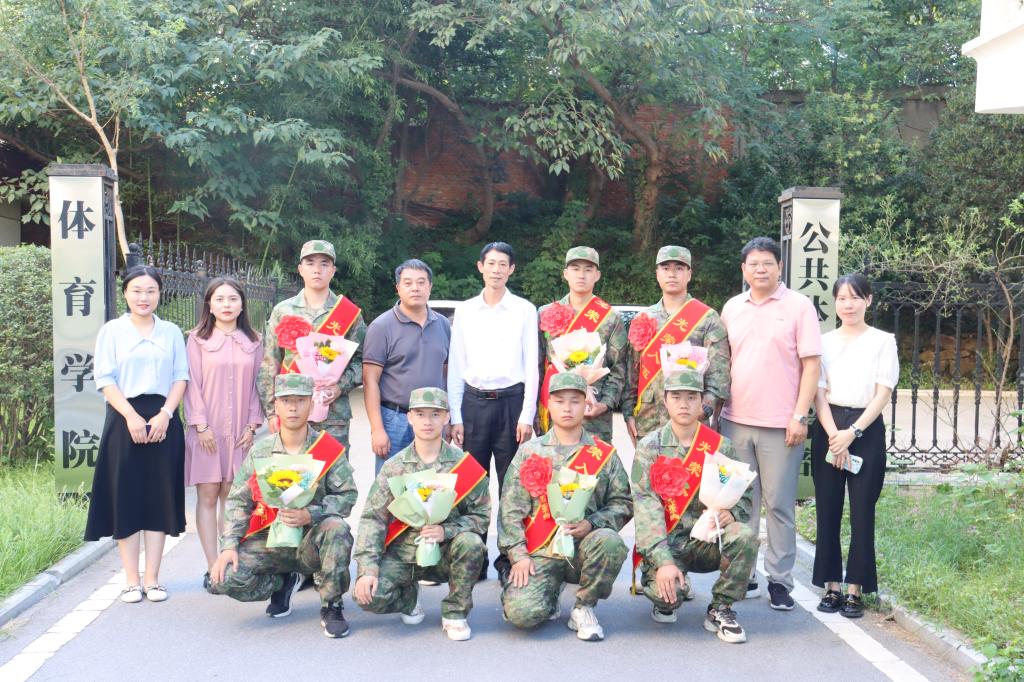 最后,学院向入伍学生赠送了鲜花,希望他们力争早日建功军营,为学校争光添彩。