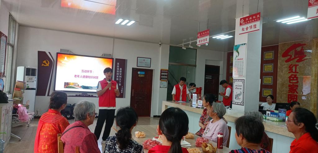 讲座紧紧围绕中老年健身运动的时间、强度、方法,运动后的恢复及注意事项、健康饮食习惯等内容,与社区居民进行健康知识问答交流和养生经验分享。在互动阶段,太阳集团城娱8722学生一支部党员带领社区老人一起做热身、拉伸、呼吸、体操等保健动作,为大家提供了更加专业科学的健身建议。