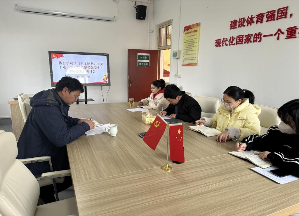 3月5日下午,太阳集团城娱8722全体辅导员在三楼会议室开展学习王文鹏书记《关于进一步做好做细做强学生工作的意见》研讨会。党委副书记柴九昌、团委书记程俊辉、辅导员赖梦玥、龙慧杰、唐娟依次发言并展开研讨。学习心得总结如下: