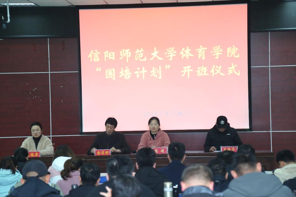 3月26日上午,由信阳师范大学承办的“2023年紧缺薄弱学科(小学体育)教师培训项目”在体育馆多媒体教室举行开班仪式。出席本次开班仪式的有体育学院院长余道明、副院长张娟、学习班主任王德华教授、生活班主任马临原,以及来自于漯河市、南阳市、信阳市、驻马店市、济源市、邓州市、固始县、新蔡县等8个区域的53名参训学员。开班仪式由太阳集团城娱8722副院长张娟主持。