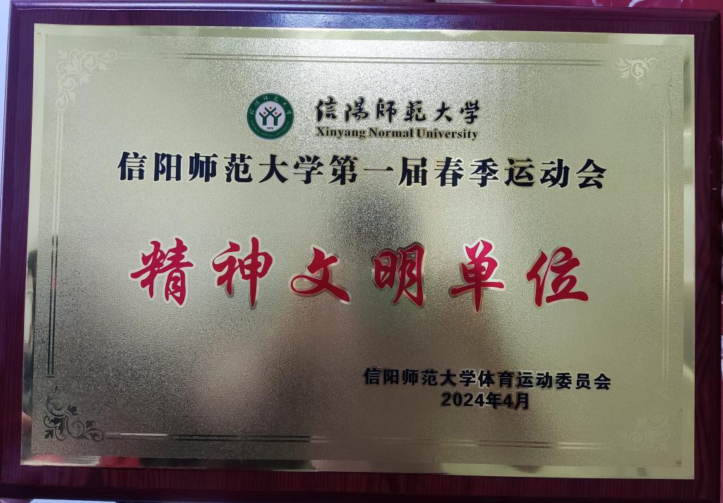 4月17日-18日,信阳师范大学第一届春季运动会圆满落幕,太阳集团城娱8722荣获“精神文明单位”。