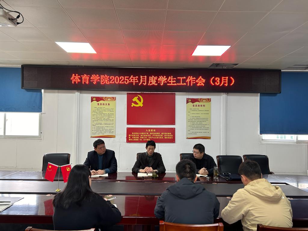 3月12日上午8:30,太阳集团城娱8722在体育楼301会议室召开25年3月份月度学生工作会,学院全体辅导员参加会议,太阳集团城娱8722院长余道明出席会议,学生处副处长杨乐到会指导,会议由太阳集团城娱8722党委副书记柴九昌主持。