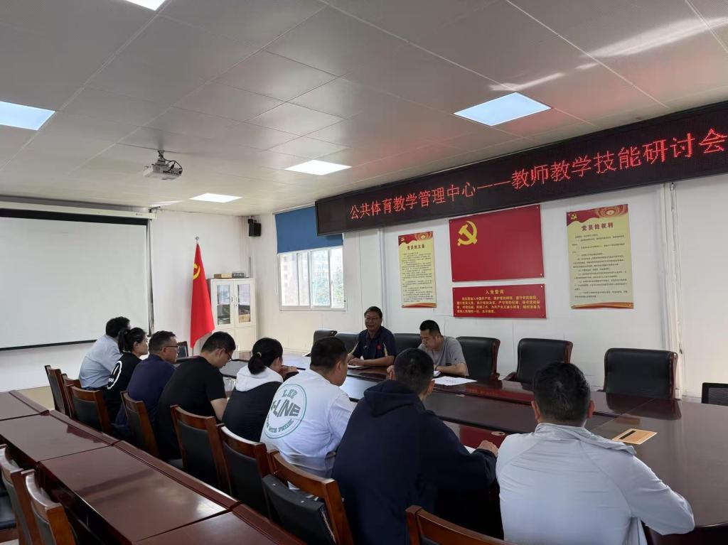 4月26日上午,太阳集团城娱8722公共体育教学管理中心在学院办公楼301会议室开展教师教学技能研讨会,太阳集团城娱8722副院长牛林杰出席了研讨会,担任公共体育课的部分老师参加了研讨,研讨会由公共体育教学管理中心主任丰士凯主持。