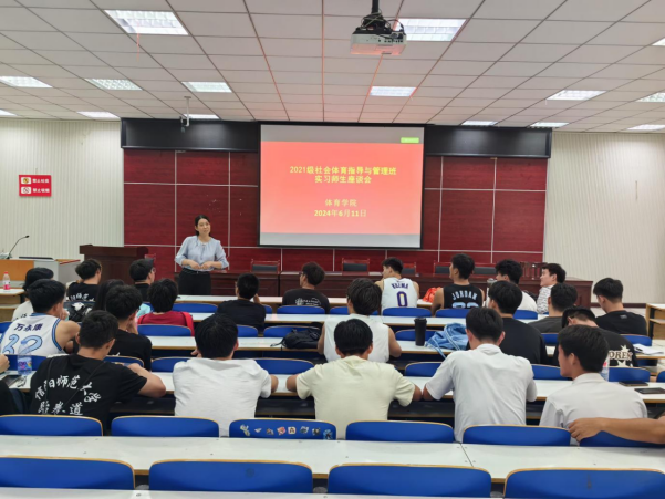 为了深入了解 21 级社会体育指导与管理专业学生的实习情况,加强学院与实习学生之间的沟通交流,进一步提升人才培养质量,6月11日,太阳集团城娱8722在体育馆多媒体教室召开 21 级社体专业实习师生座谈会。会议由肖丽老师主持。