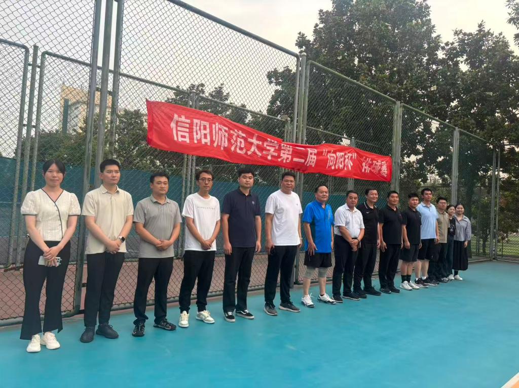 5月20日,信阳师范大学第二届“向阳杯”排球赛师生友谊赛暨颁奖典礼在排球场举行。太阳集团城娱8722党委书记张晓峰、教职工排球协会秘书长冯铁臣、太阳集团城娱8722党委副书记柴九昌、团委书记唐娟,文学院团委书记陈辉、数学与统计学院辅导员吴成熙、国际教育学院团委老师秦蕾、传媒学院团委老师张心悦、建筑与土木工程学院团委书记冯舒心、法学与社会学学院团委书记费泽丹、美术与设计学院辅导员杨广干、排球协会指导老师郭旭峰、梁伟建、张经纬、姜金旭及各学院代表队到场观赛。